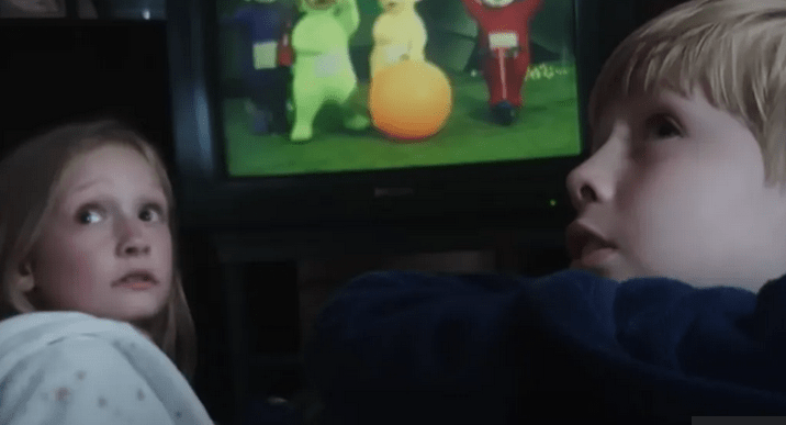 The trailer opens with a throwback to popular children’s TV show Teletubbies, which first aired in 1997, with several children gathered around an old TV as the chirpy theme tune plays innocuously – yet menacingly – in the background.
