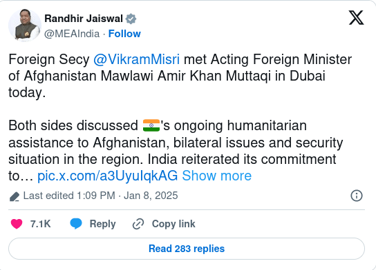 During the discussions, Misri emphasized the “historic friendship” and “strong people-to-people contacts” between the two nations. Meanwhile, the Afghan foreign minister described India as “an important and economically significant country in the region.”