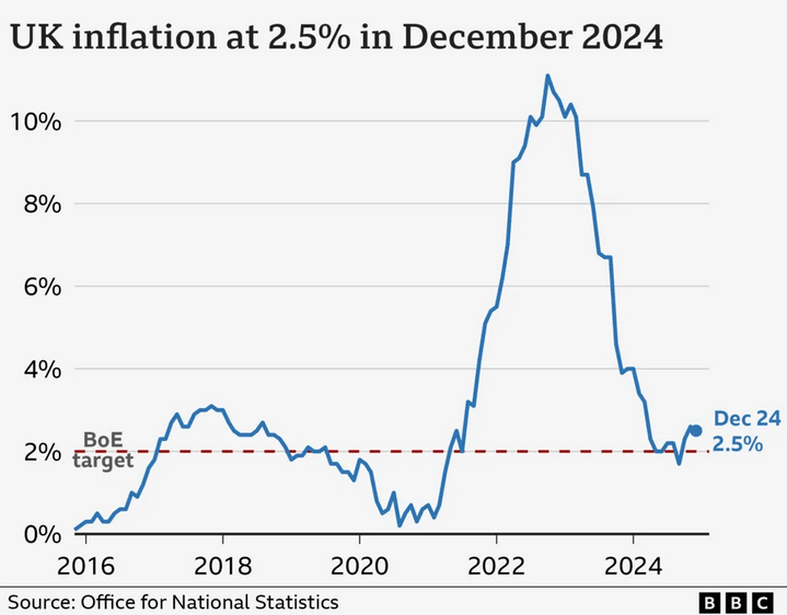 Inflation is much lower than its peak in October 2022 when prices soared, pushing up the cost of living for households and leading to higher interest rates, which has made the cost of loans, credit cards and mortgages, more expensive.