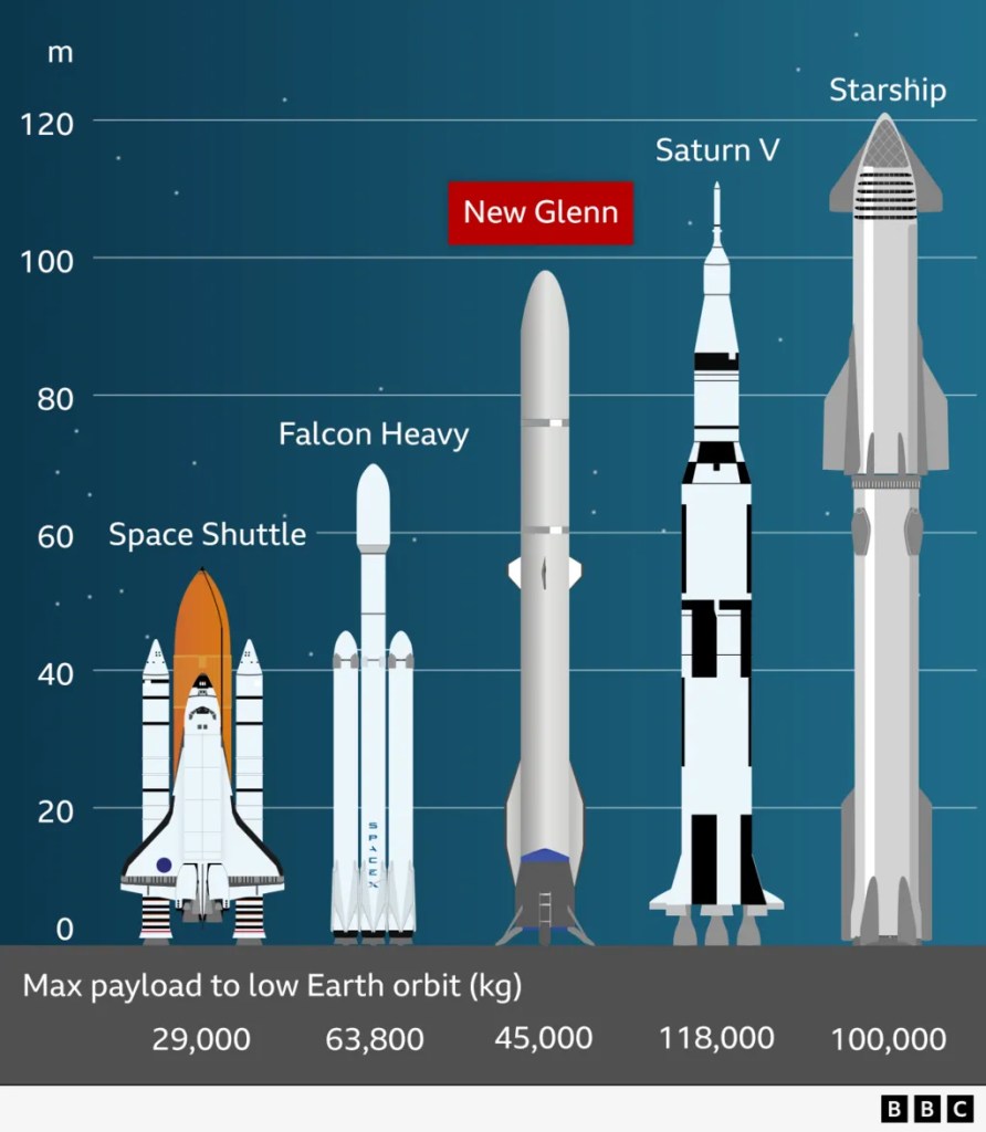 The New Glenn rocket launched from Cape Canaveral Space Force Station in Florida at 02:02 local time (07:02 GMT).