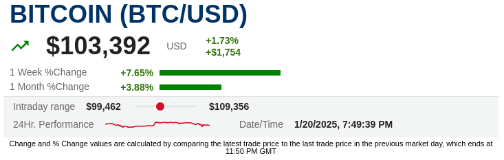 He also noted Bitcoin’s run. The largest crypto by market value is trading north of $100,000 as of Sunday evening.