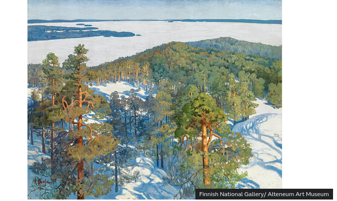 It was natural that these painters should be drawn to these wintery scenes, Ulf Küster, the exhibition’s curator, tells the BBC. “In Nordic landscapes, snow is a very dominant factor of life from October to late April… It’s just this massive presence of white and nature and wilderness and vastness that really defines this landscape, and I think these painters have found a very interesting response to that.” This burst of Nordic landscape painting was also a response to the changes that the painters perceived as a result of population growth and industrialisation. “There was a big desire in the late 19th Century to return to pure nature and the simple life,” explains Küster. “You had these highly industrialised countries and pollution, and the pureness of white snow must have been quite a contrast.”