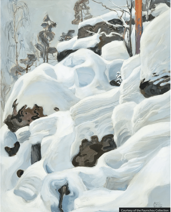 Boberg’s awe when confronted with this dazzling wintry world with its unique light is clear. “What really drove these people was to find a response to the extremities of nature – the very essence of snow, winter and ice.” explains Küster. To achieve this, they would “get as close to nature as possible”, he says. Far from hiding from the harsh winter, Boberg and her contemporaries immersed themselves in the landscape. “They are painters who really wanted to paint the experience, to feel the extreme temperature and the snow blindness,” says Küster. Munch, he continues, had outdoor studios, and would leave his paintings outside “just to let nature test them”, while some of the Canadian painters would paddle out on to lakes and paint from their canoes.