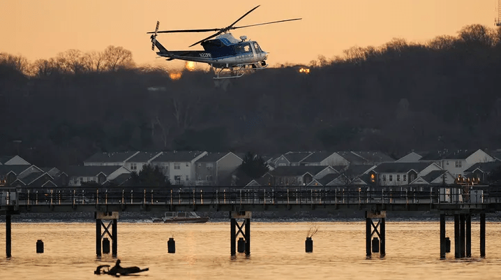 First responders switched to recovery efforts in the Potomac River after it was believed that there were no survivors. There were 60 passengers and four crew members aboard the flight and three soldiers aboard the UH-60 Black Hawk helicopter.