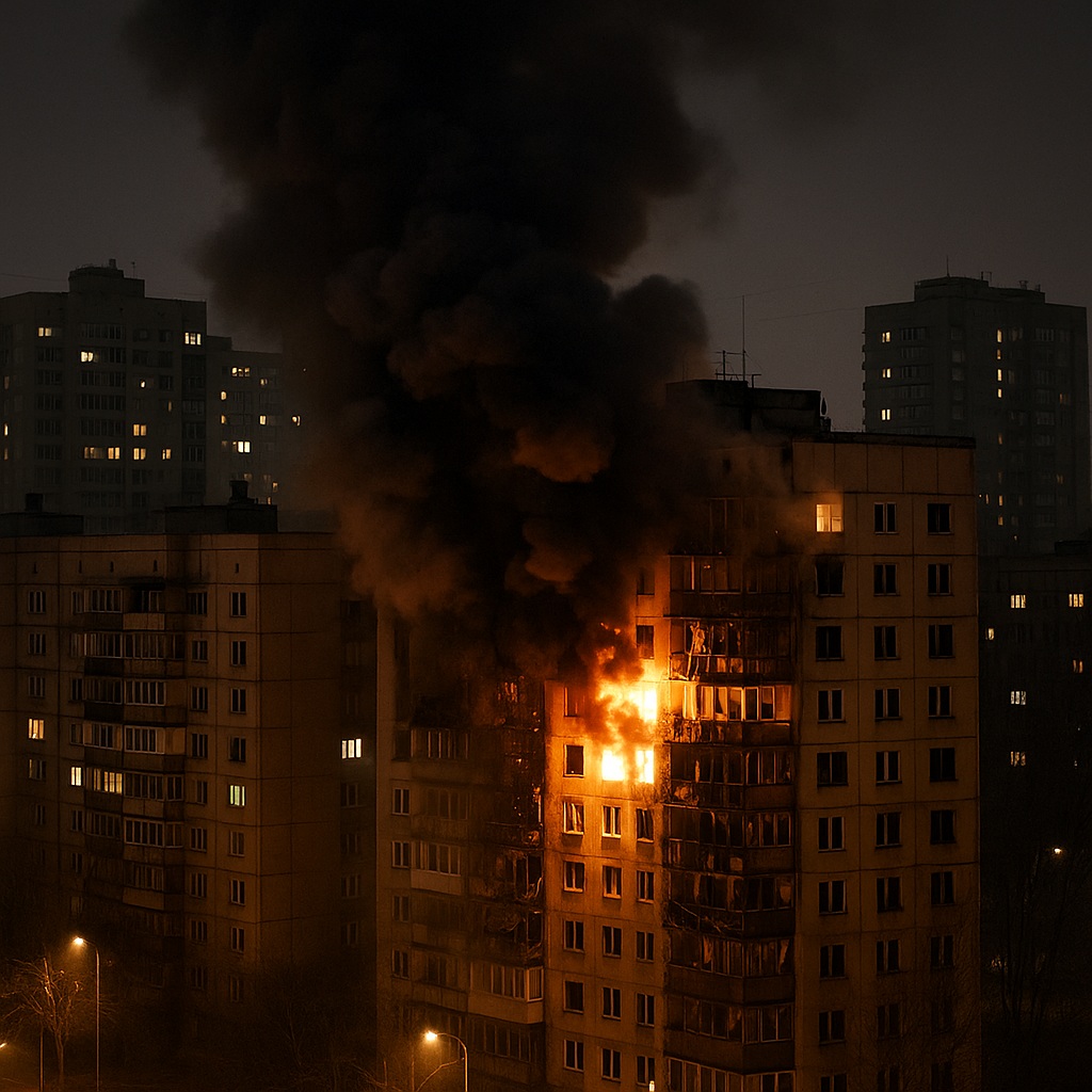 Across the city, apartment blocks suffered significant damage: shattered windows, collapsed balconies, scorched facades, and debris-filled stairwells. Emergency response teams navigated smoke, fires, and unstable structures as they pulled survivors from rubble and escorted residents down damaged staircases. Among the injured were children who had been asleep in bedrooms now reduced to broken glass and torn plaster. Hospitals reported an influx of patients suffering from burns, shrapnel wounds, and trauma-induced shock.
