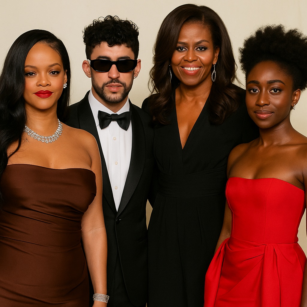 Meanwhile, Bad Bunny continues his ascent as one of the most influential style disruptors in music. His gender‑fluid, eccentric ensembles challenge long‑standing conventions and invite a new generation to embrace fashion without rules. From vibrant outerwear to full‑sequin tailoring, his looks remain unpredictable and magnetic, reflecting a cultural shift toward expressive freedom.